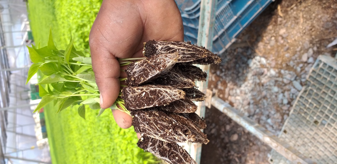 Lavado de raices despues de dos aplicaciones de inbio-root en agricola Pérez en Leon, Gto.