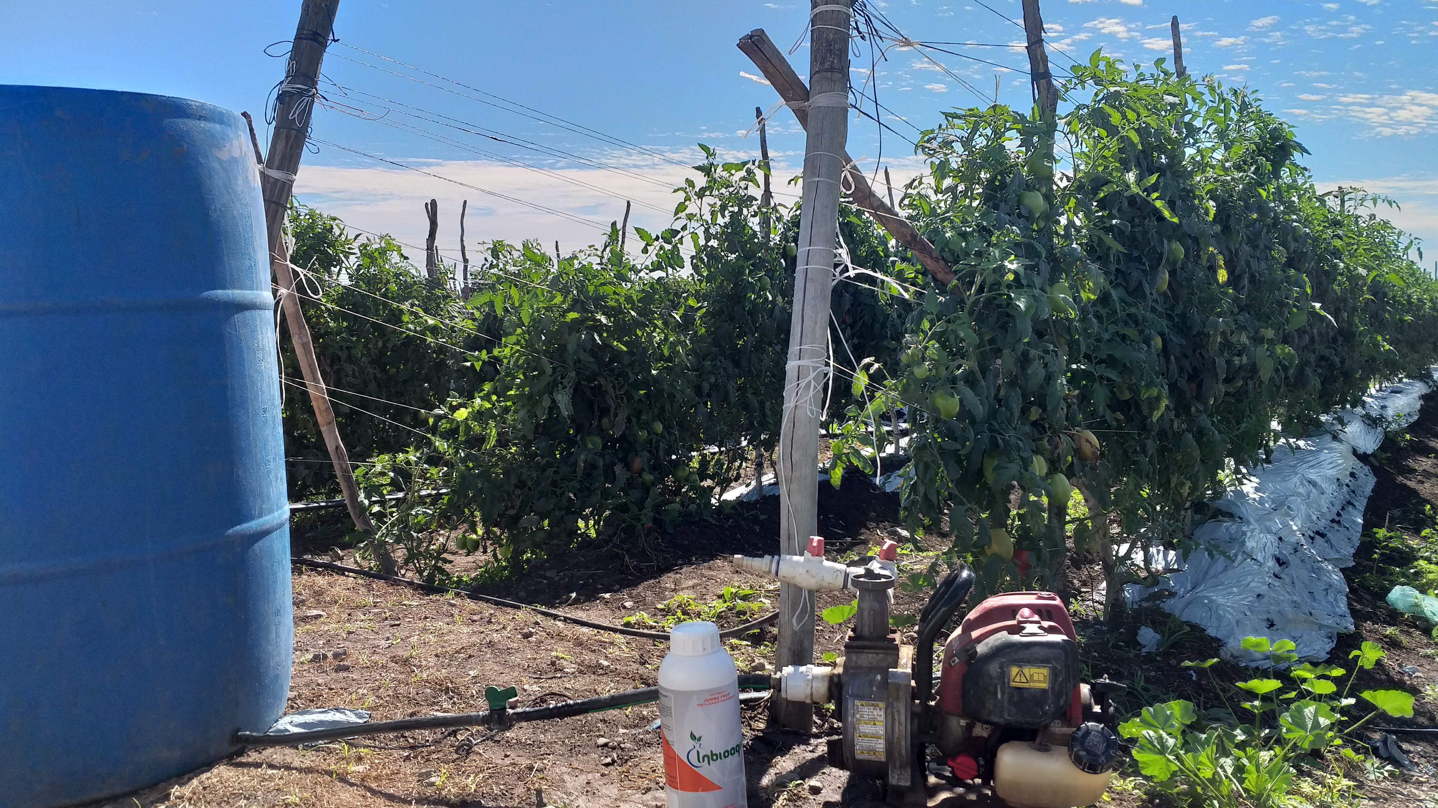 Aplicación de jumbo frut en cultivo de tomate directo a la valvula, esto para el incremento de tamaño del fruto.